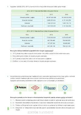 5. Aşağıdaki tabloda 2012 - 2013 yıllarında ithal ve ihraç edilen kimyasal ürünler gösterilmiştir.
