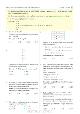 POZİTİF TAM SAYILARIN POZİTİF TAM SAYI ÇARPANLARI - 1 1. ÜNİTE – 1. TEST 9