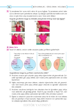 20. Yapılan bir ankette, sorulara verilen cevapların yüzdesi grafiklerde gösterilmiştir.