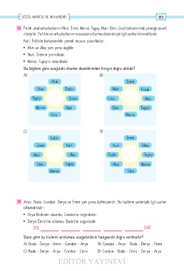 19. Arya, Bade, Candan, Derya ve Emre yan yana dizilmişlerdir. Bu kişilerin yerleriyle ilgili şunlar