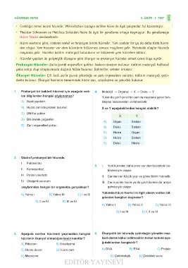 3. Aşağıda ver�len hücresel yapılardan hang�s� 6. Ökaryot�k b�r hücrede çek�rdeğ�n yönet�m mer-