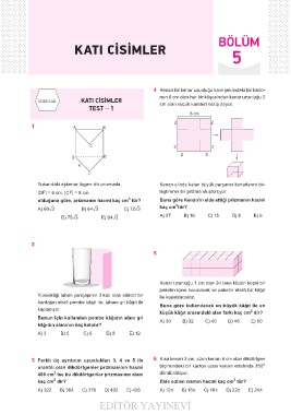 3 Farklı üç ayrıtının uzunlukları 3, 4 ve 5 ile 6 Kısa kenarı 2 cm, uzun kenarı 6 cm olan dikdörtgen