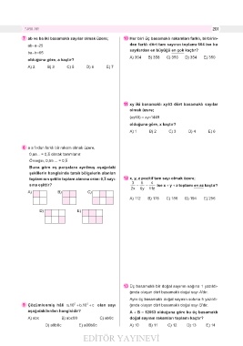 7 ab ve ba iki basamaklı sayılar olmak üzere; 10 Her biri üç basamaklı rakamları farklı, birbirin-