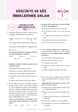 SÖZCÜKTE VE SÖZ 4 Aşağıdakilerin hangisinde, eş sesli sözcükler