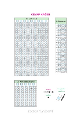 CEVAP KAĞIDI Ad ve Soyad 5. Deneme T.C Kimlik Numarası EDİTÖR YAYINEVİ