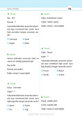 Yukarıdaki kelimeler arasında anlam- Doğru cevap C seçeneğidir.