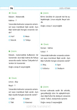 A) Çilek B) Şeker vardır. Futbol, stadyumda oynanır.