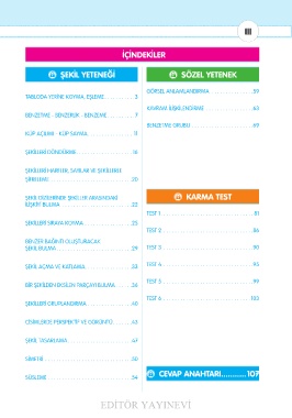 ŞEKİL BULMA . . . . . . . . . . . . . . . . . . . . . . . . . . .29 TEST 3 . . . . . . . . . . . . . . . . . . . . . . . . . . . . . . . .90
