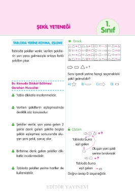 TABLODA YERİNE KOYMA, EŞLEME rnekk: