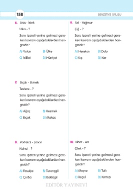 C) Çorba D) Baklagil C) Reçel D) Kırmızı