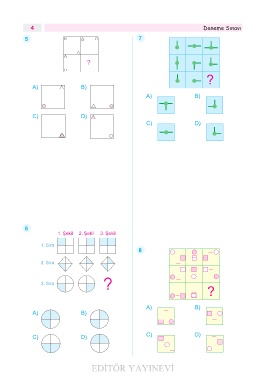 4 Deneme Sınavı 5 7 A) B) A) B) C) D) C) D) 6 1. Şekil 2. Şekil 3. Şekil 1. Sıra 8 2. Sıra 3. Sıra A) B) A) B) C) D) C) D) EDİTÖR YAYINEVİ