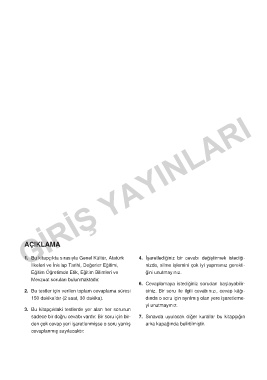 1. Bu kitapçıkta sırasıyla Genel Kültür, Atatürk 4. İşaretlediğiniz bir cevabı değiştirmek istediği-