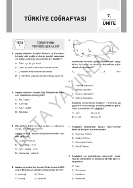 3. Ülkemizdeki dağlar kıvrılma, kırılma ve volkanizma 7. Aşağıdaki platolardan hangisi diğerlerinden