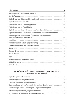 Eğitim Programının Değerlendirilmesi ................................................................ 182
