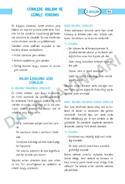 Cümleleri anlam özellikleri açısından şu ana
