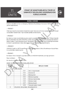 ESNAF VE SANATKÂR MESLEK KOLLARI LİSTESİ