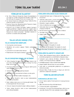• Türkler, Abbasi Devleti’nin idari ve askeri kademelerinde • Karahanlılar, Orta Asya Türk kültürüyle İslam kültürünü kay-