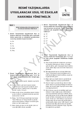TEST 1 3. Resmî Yazışmalarda Uygulanacak Usul ve