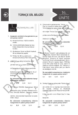 1. Aşağıdaki cümlelerin hangisinde bir ya- IV