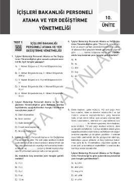 TEST 1 İÇİŞLERİ BAKANLIĞI 4. İçişleri Bakanlığı Personeli Atama ve Yer Değiş-