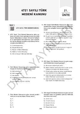 TEST 1 4. 4721 Sayılı Türk Medeni Kanunu’na göre aşa-