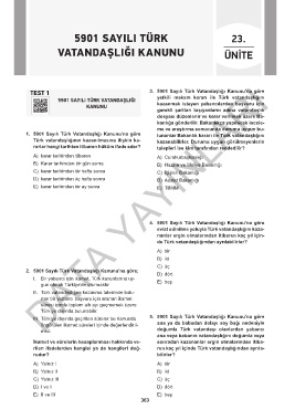 TEST 1 3. 5901 Sayılı Türk Vatandaşlığı Kanunu’na göre