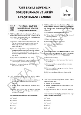 TEST 1 7315 SAYILI GÜVENLİK 3. 7315 Sayılı Güvenlik Soruşturması ve Arşiv Araş-