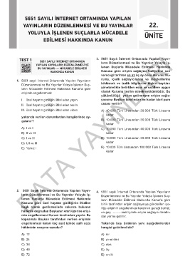TEST 1 5651 SAYILI İNTERNET ORTAMINDA 3. 5651 Sayılı İnternet Ortamında Yapılan Yayın-