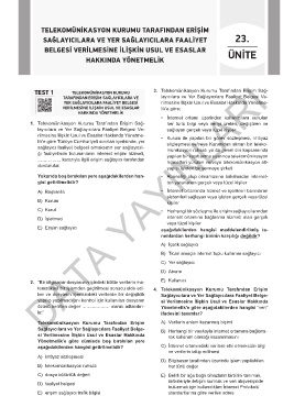 TEST 1 TELEKOMÜNİKASYON KURUMU 3. Telekomünikasyon Kurumu Tarafından Erişim Sağ-