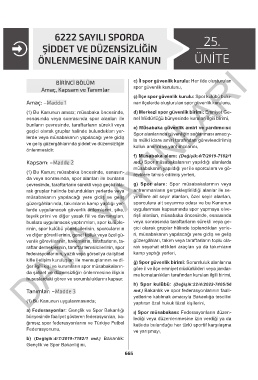 (1) Bu Kanunun amacı; müsabaka öncesinde, d) Merkezi spor güvenlik birimi: Emniyet Ge-