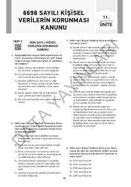 TEST 1 6698 SAYILI KİŞİSEL 3. 6698 sayılı Kişisel Verilerin Korunması Kanu-