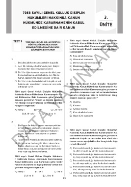 TEST 1 7068 SAYILI GENEL KOLLUK DİSİPLİN 3. 7068 sayılı Genel Kolluk Disiplin Hükümleri
