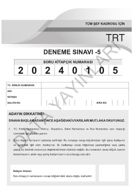 1. T.C. Kimlik Numaranızı, Adınızı, Soyadınızı, Salon Numaranızı ve Sıra Numaranızı soru kitapçığı