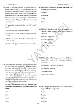 45. Glikoz ile hazırlanan besinler ve şekerin kendisi ta- 47. Yüzölçümü bakımından en küçük olan ilimiz aşa-