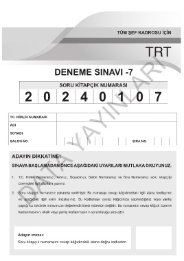 1. T.C. Kimlik Numaranızı, Adınızı, Soyadınızı, Salon Numaranızı ve Sıra Numaranızı soru kitapçığı