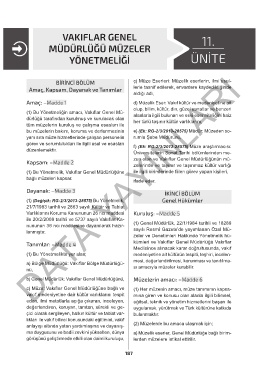 c) Müze: Vakıflar Genel Müdürlüğüne bağlı ve (1) Her müzenin amacı, müze tanımının kapsa-