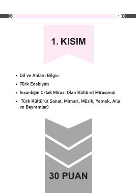 5 1. KISIM • Dil ve Anlam Bilgisi • Türk Edebiyatı • İnsanlığın Ortak Mirası Olan Kültürel Mirasımız • Türk Kültürü( Sanat, Mimari, Müzik, Yemek, Aile ve Bayramlar) 30 PUAN