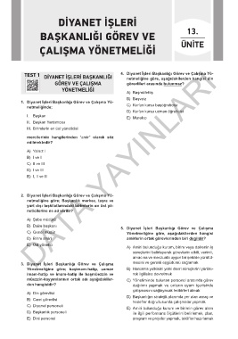 TEST 1 DİYANET İŞLERİ BAŞKANLIĞI 4. Diyanet İşleri Başkanlığı Görev ve Çalışma Yö-