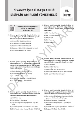 TEST 1 4. Diyanet İşleri Başkanlığı Disiplin Amirleri yö-