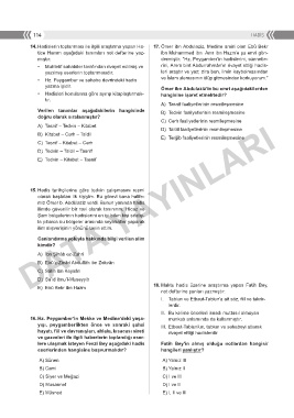 14. Hadislerin toplanması ile ilgili araştırma yapan Ha- 17. Ömer ibn Abdulaziz, Medine amiri olan Ebû Bekr