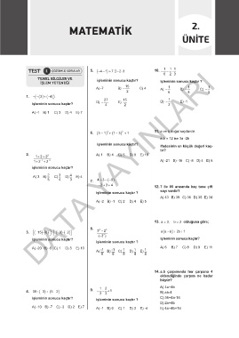 TEST 1 ÇÖZÜMLÜ SORULAR 5. ( 4 1− − ) 7:2 2 3+ −⋅ 10. − 1 − 11