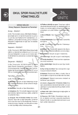 (1) Bu Yönetmeliğin amacı, Milli Eğitim Bakanlı- e) Genel Müdür: Spor Hizmetleri Genel Müdü-