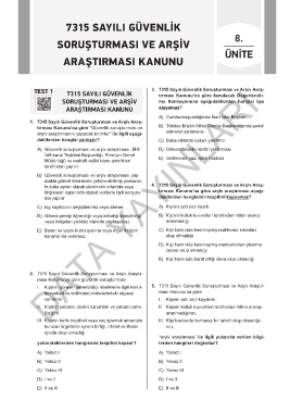 TEST 1 7315 SAYILI GÜVENLİK 3. 7315 Sayılı Güvenlik Soruşturması ve Arşiv Araş-