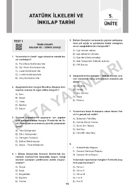 TEST 1 5. Balkan Savaşları sonucunda yapılan antlaşma-
