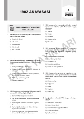 TEST 1 4. 1982 Anayasası’na göre aşağıdakilerden hangisi