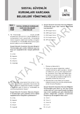 TEST 1 3. Sosyal Güvenlik Kurumları Harcama Belgeleri