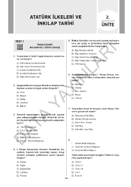 TEST 1 5. Balkan Savaşları sonucunda yapılan antlaşma-