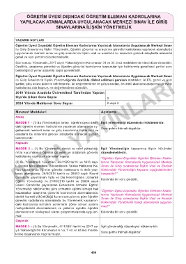 Öğretim Üyesi Dışındaki Öğretim Elemanı Kadrolarına Yapılacak Atamalarda Uygulanacak Merkezi Sınav