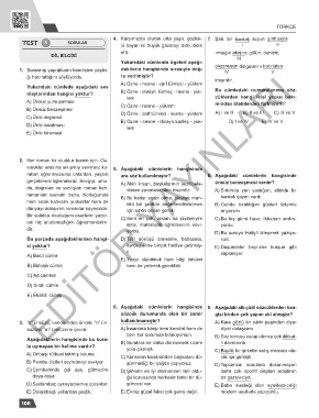1. Sararmış yaprakların kendisine yaşlılı- dakilerin hangisinde sırasıyla doğ- IV V