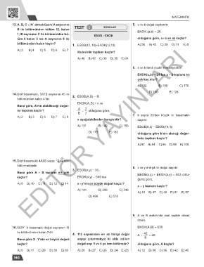 14. Dört basamaklı, 5A7B sayısının 45 ile 2. EBOB(A,B) = 13